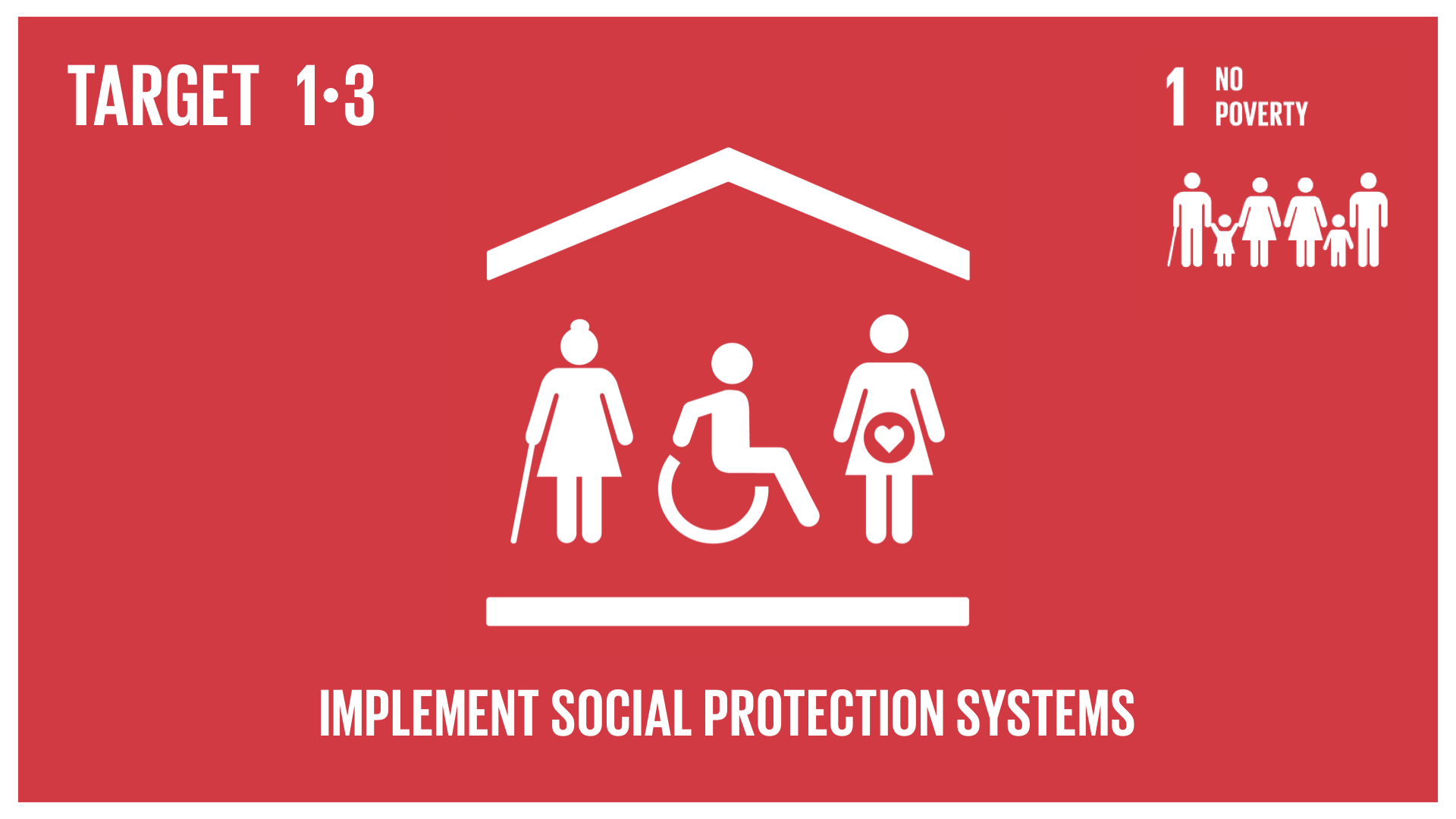 1.3 Nationaal toepasbare sociale beschermingssystemen en maatregelen implementeren voor iedereen, met inbegrip van sociale beschermingsvloeren, en tegen 2030 een aanzienlijke dekkingsgraad realiseren van de armen en de kwetsbaren.
